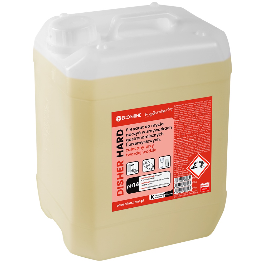 DISHER HARD – PROFESJONALNY PŁYN DO MYCIA NACZYŃ W TWARDEJ WODZIE – KANISTER 12 KG